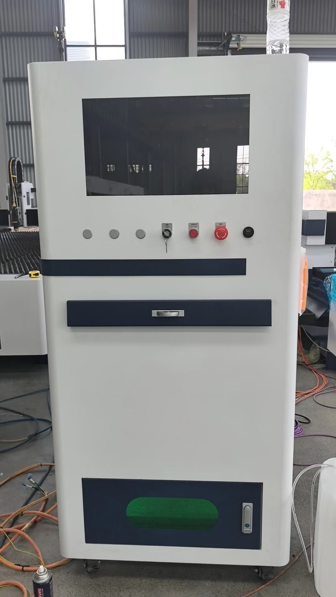 La source laser (3000W-6000W) peut également mettre à l'intérieur de l'armoire électrique, ce qui est nécessaire pour avoir un meilleur refroidissement par la climatisation extérieure, qui est d'économiser l'espace pour l'usine arranger